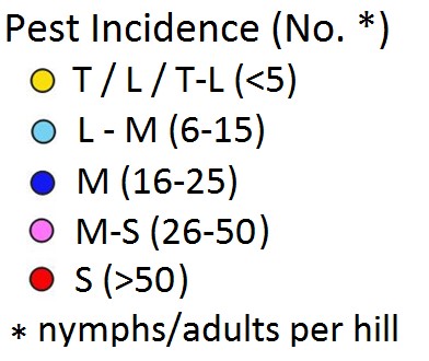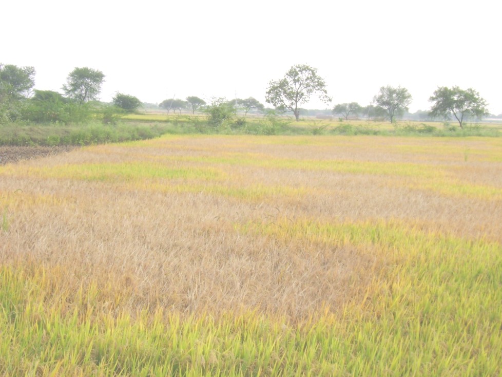 Both adults and nymphs suck the sap from the base of the tillers, resulting in yellowing and drying of the plants. At early stages, round yellow patches appear which soon turn brownish due to drying up of the plants. The patch of infestation spreads in concentric circles within the field and in severe cases the affected field gives a burnt appearance. This condition is known as 'hopper burn' resulting in 100% crop loss. The hopper populations can multiply very fast and migrate over long distances causing widespread infestation in short time. Apart from direct damage, BPH is also a vector of viral diseases viz., grassy stunt, ragged stunt and wilted stunt.