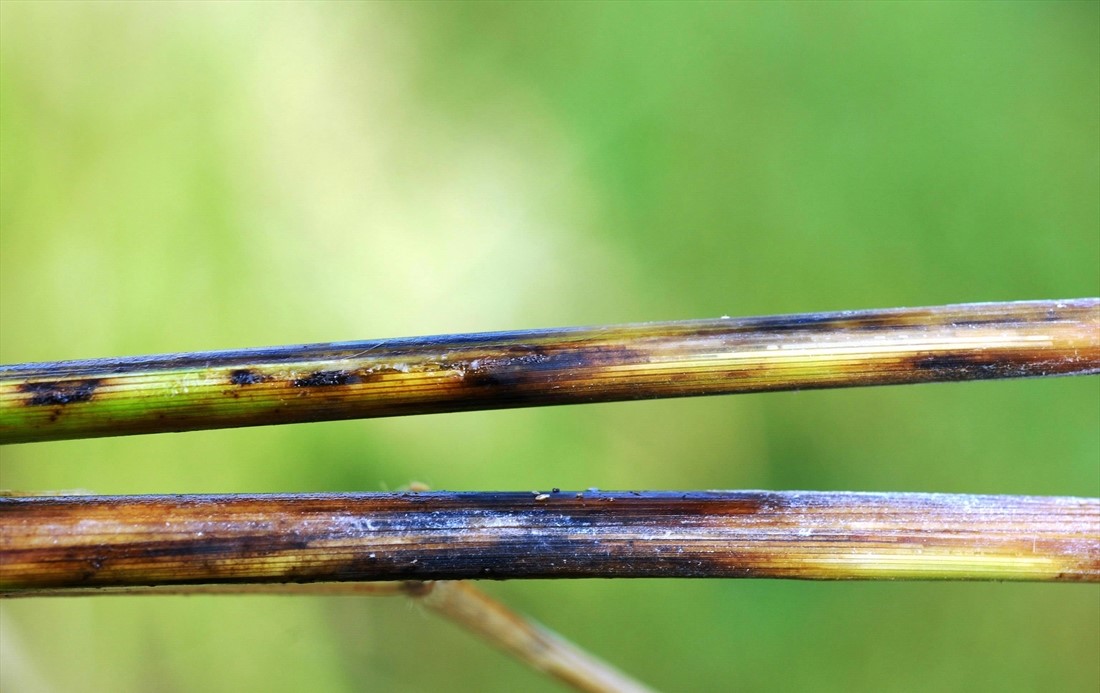 Later, black lesions are seen penetrating the inner leaf sheath and culm.